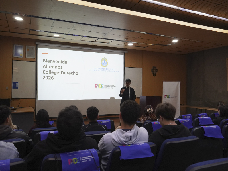 Derecho UC, a través del Programa de Apoyo y Desarrollo Estudiantil (PADE), reunió a estudiantes de la generación 2025 del programa College UC para una inducción de bienvenida a la Facultad.